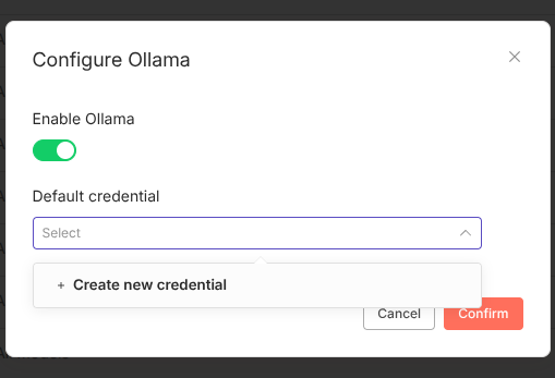 Wir wollen ein lokales Modell nutzen. Klicke auf „Configure“ bei Ollama und aktiviere den Schalter „Enable Ollama“.