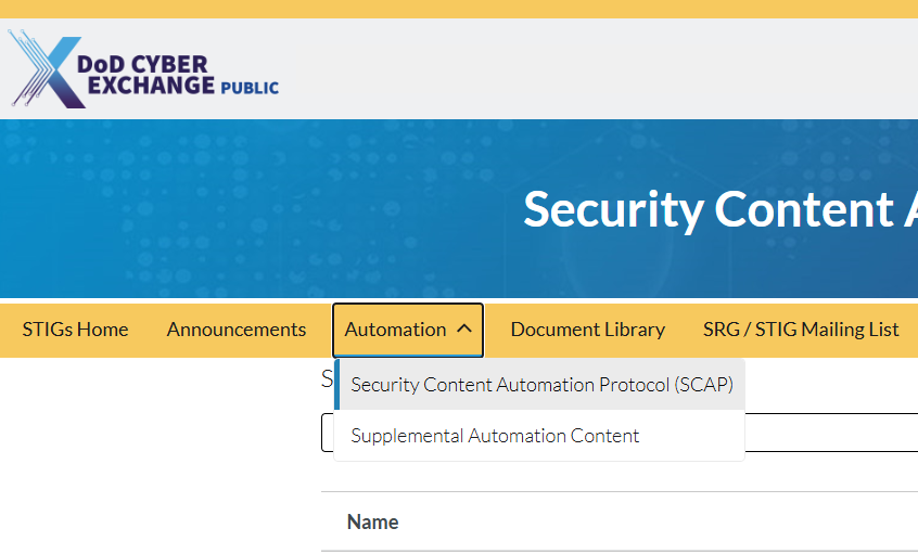 Unter den Security Technical Implementation Guides (STIGs) -> Automation -> Security Content Automation Protocol (SCAP)
